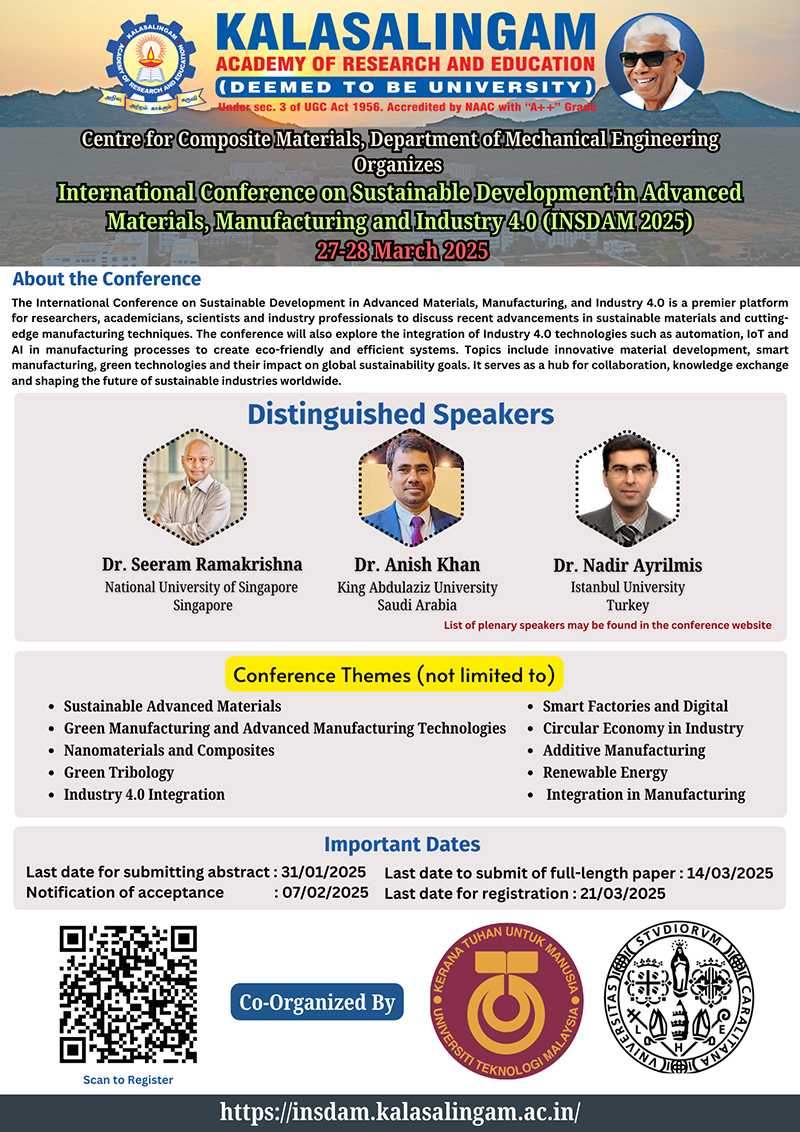 Conference Link:  https://insdam.kalasalingan.ac.in/
